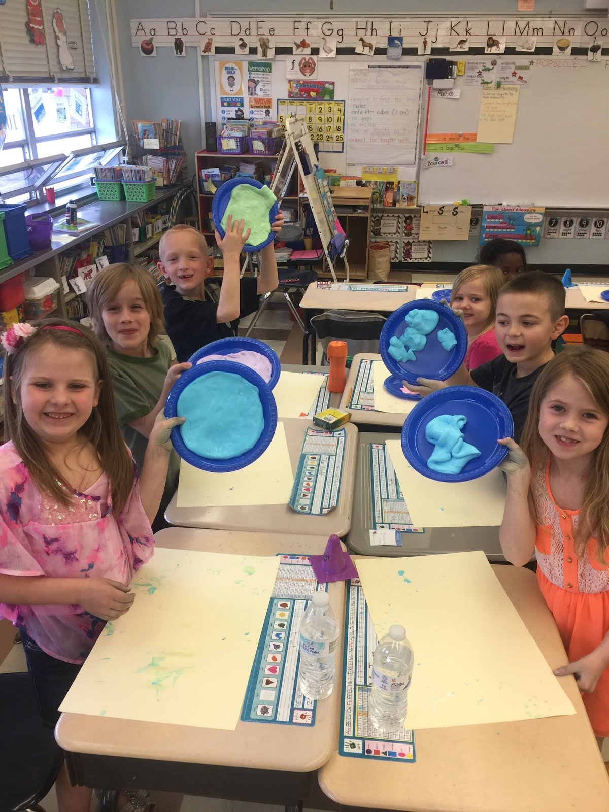 Our 1st graders engaged in a variety of science experiments this past week to culminate our unit on solids and liquids. At the start of the week we made sensory bottles. The children combined salt, glitter, glue, and water to make their shakeable concoctions.